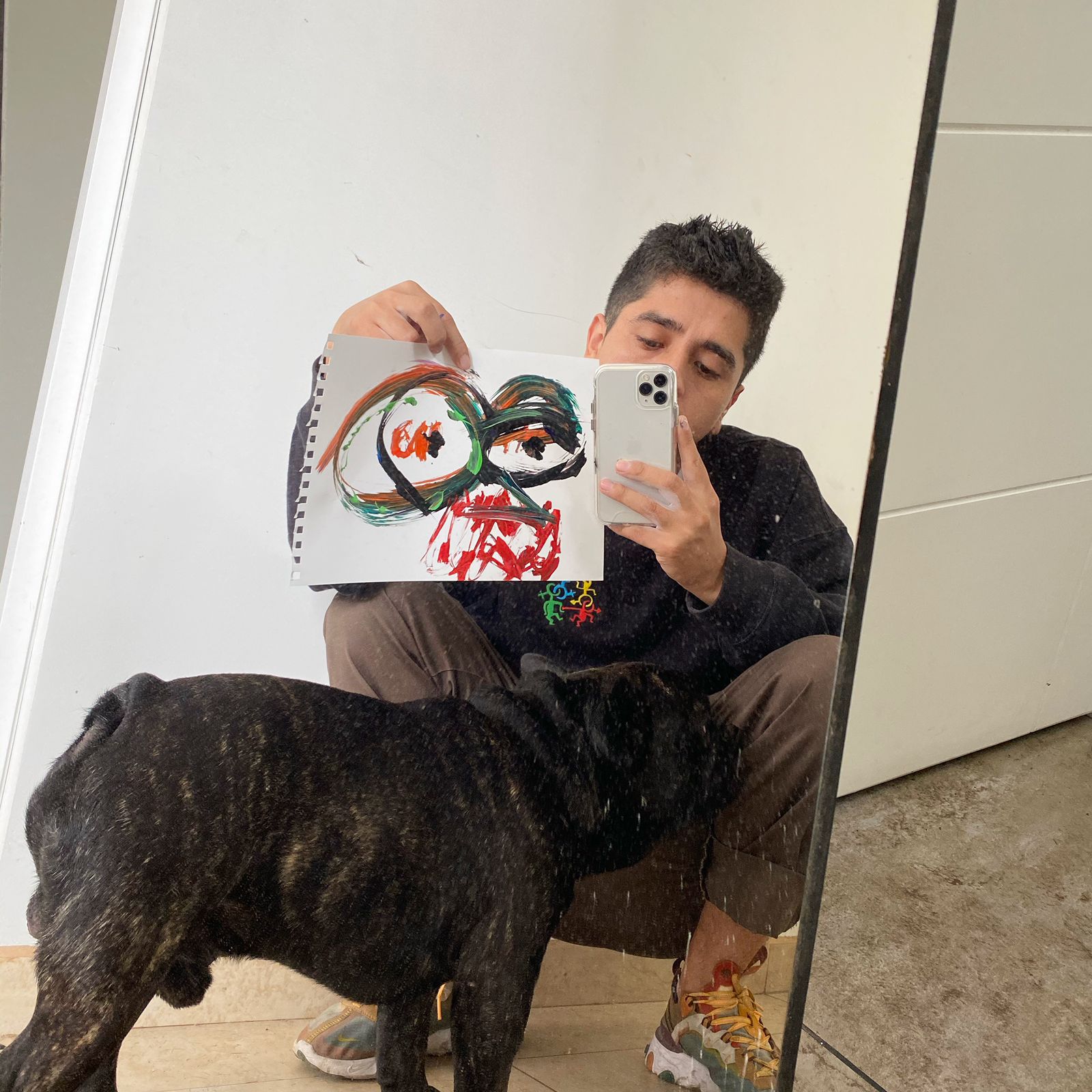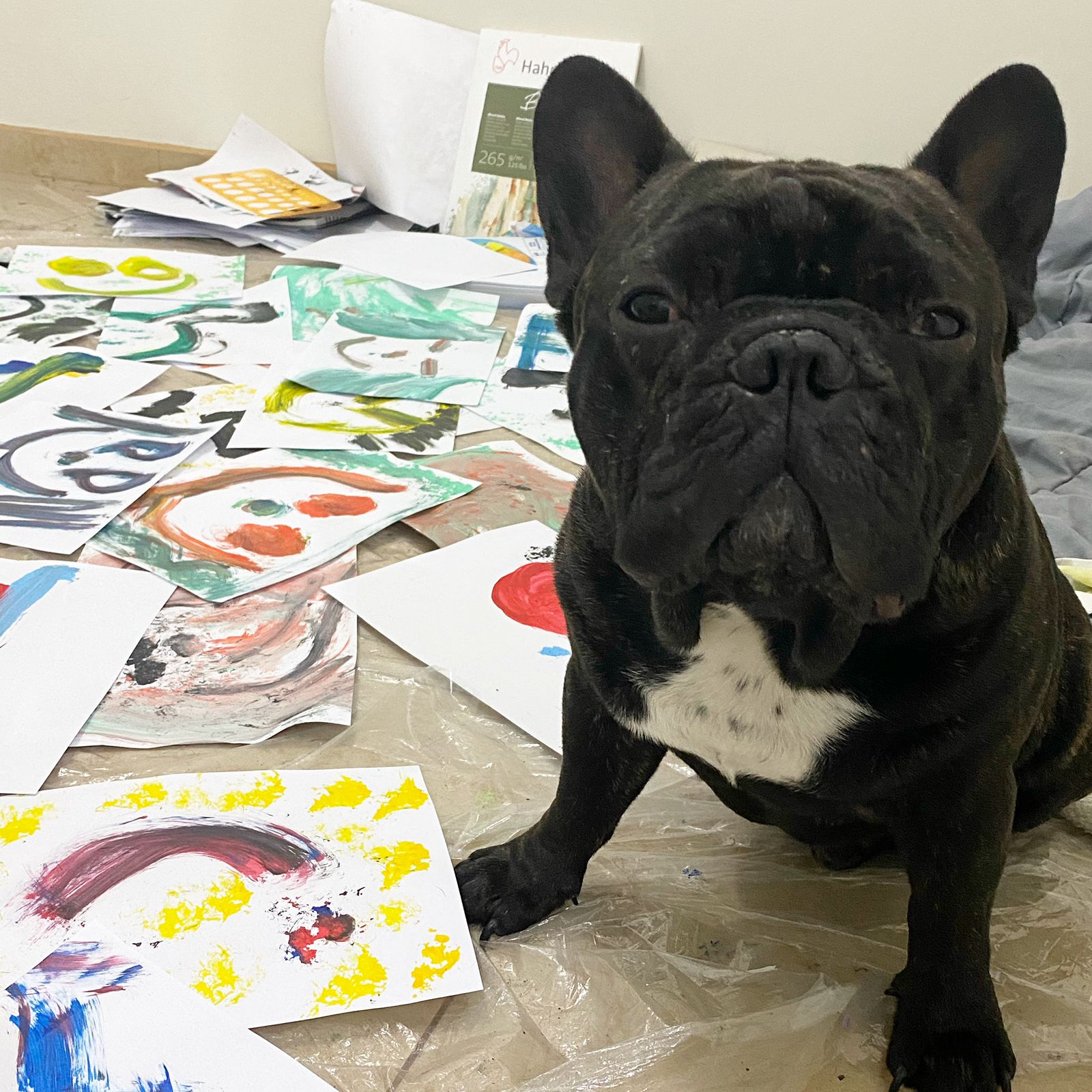 Siempre que pinto estoy acompañado de mi mejor y buen amigo, mi perro Cazulo Cazulito
